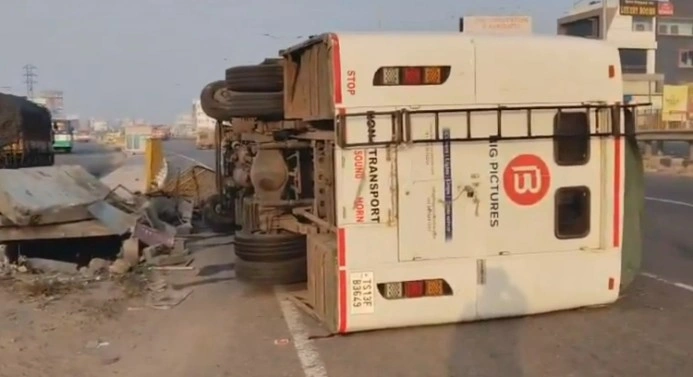 హైదరాబాద్ శివారులోని పెద్దఅంబర్పేట్ ఫ్లైఓవర్ వద్ద తీవ్ర రోడ్డు ప్రమాదం చోటుచేసుకుంది. సినిమా షూటింగ్ బృందానికి చెందిన బస్సు ప్రమాదానికి గురైంది. విశాఖపట్నం నుంచి మణికొండకు వెళ్తున్న ఈ బస్సు, పెద్దఅంబర్పేట్ ఫ్లైఓవర్ వద్ద డ్రైవర్ నియంత్రణ కోల్పోవడంతో డివైడర్ను ఢీకొట్టి బోల్తా పడింది.