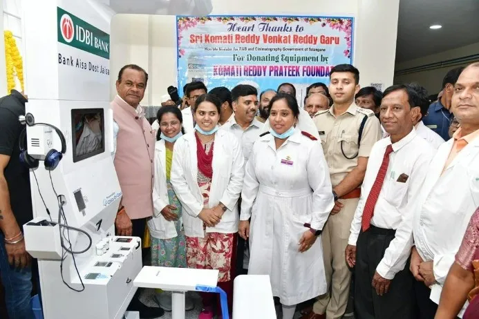 నల్గొండ: ప్రజలకు నాణ్యమైన వైద్య సేవలు సులభంగా, వేగంగా అందించాలనే లక్ష్యంతో కోమటిరెడ్డి ప్రతీక్ ఫౌండేషన్ ఆధ్వర్యంలో, IDBI బ్యాంక్ CSR నిధులతో నల్గొండ జిల్లా ప్రభుత్వ ఆస్పత్రిలో రూ.30 లక్షల వ్యయంతో ఏర్పాటు చేసిన హెల్త్ ఎటిఎం – ప్రైమ్ టేర్ మిషన్ మరియు ఈసీజీ మిషన్ను రాష్ట్ర మంత్రి కోమటిరెడ్డి వెంకట్ రెడ్డి ప్రారంభించారు.