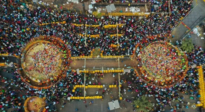 మేడారం, తెలంగాణ: ప్రతి రెండేళ్లకోసారి ఘనంగా నిర్వహించే మేడారం జాతర తెలంగాణ రాష్ట్రంలో అతి పెద్ద ఉత్సవాలలో ఒకటి. ఈ జాతర వనదేవతలు సమ్మక్క సారలమ్మను కొలుస్తూ, గిరిజనుల సంప్రదాయాలు, సంస్కృతికి ప్రతీకగా నిలిచింది.